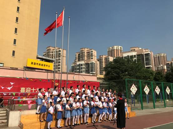活动开始后,首先由刘校长向全校辅导员、老师、队员们致辞。刘校长在致辞中首先表达了对广大队员的节日祝福,同时带领队员们诵读社会主义核心价值观,对习爷爷说出自己的心里话。之后,对即将毕业的六年级队员表达了祝福,祝愿他们把王兰庄中心小学的良好行为礼仪、优秀的品质带入新的环境,表现得更加出色。