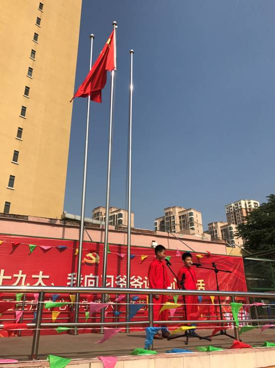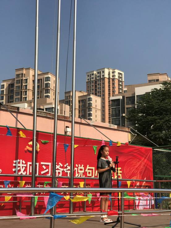 一一中队、四三中队集体带来了精彩的演出。一一中队的队员们虽然年纪小,但是他们带来的口琴伴舞《剪羊毛》表演的十分精彩,下面的队员们为他们认真的表演所倾倒。四三中队的队员们最后一个出场,作为本年度的区级优秀中队,他们的队员们以诗朗诵的形式对习爷爷说了自己的心里话,获得了全场队员们的共鸣,把全场的气氛推向了高潮。