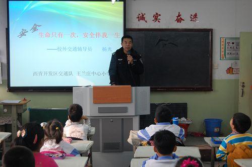 昨日我校的校外交通辅导员——西青开发区交通队的杨警官来到我校,以今年元旦在西青区某村发生的一起三死二伤的恶性交通事故,发生这起主要原因是饮酒为例,对全校师生进行普法讲座,强调遵守交通安全的重要性。杨警官讲的声情并茂,并就其他交通问题与讲话所在班级学生进行互动交流,要求学生将酒后驾驶机动车等一些违反交通法规的案例讲给家长听,规劝家长遵守交通法规,保证全家安全。讲话结束后带领现场学生学习浏览交通安全宣传展板。