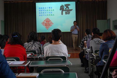 日前,天津市心理健康辅导教师,西青区实验小学王力亮老师来到我校做了一场别开生面的教师心理健康讲座。王老师首先对当前一些小学教师常见的心理问题及其产生原因进行了阐述,然后介绍了常用的几种心理自我调节的方法,并且亲自参与和指导与会教师们一起做互动游戏。老师们积极参与,玩的十分开心,达到了放松心情缓解压力的目的。本次心理健康讲座受到了到会教师的一致好评。大家一致认为只有心理健康的教师,才能培养出健康向上的学生。